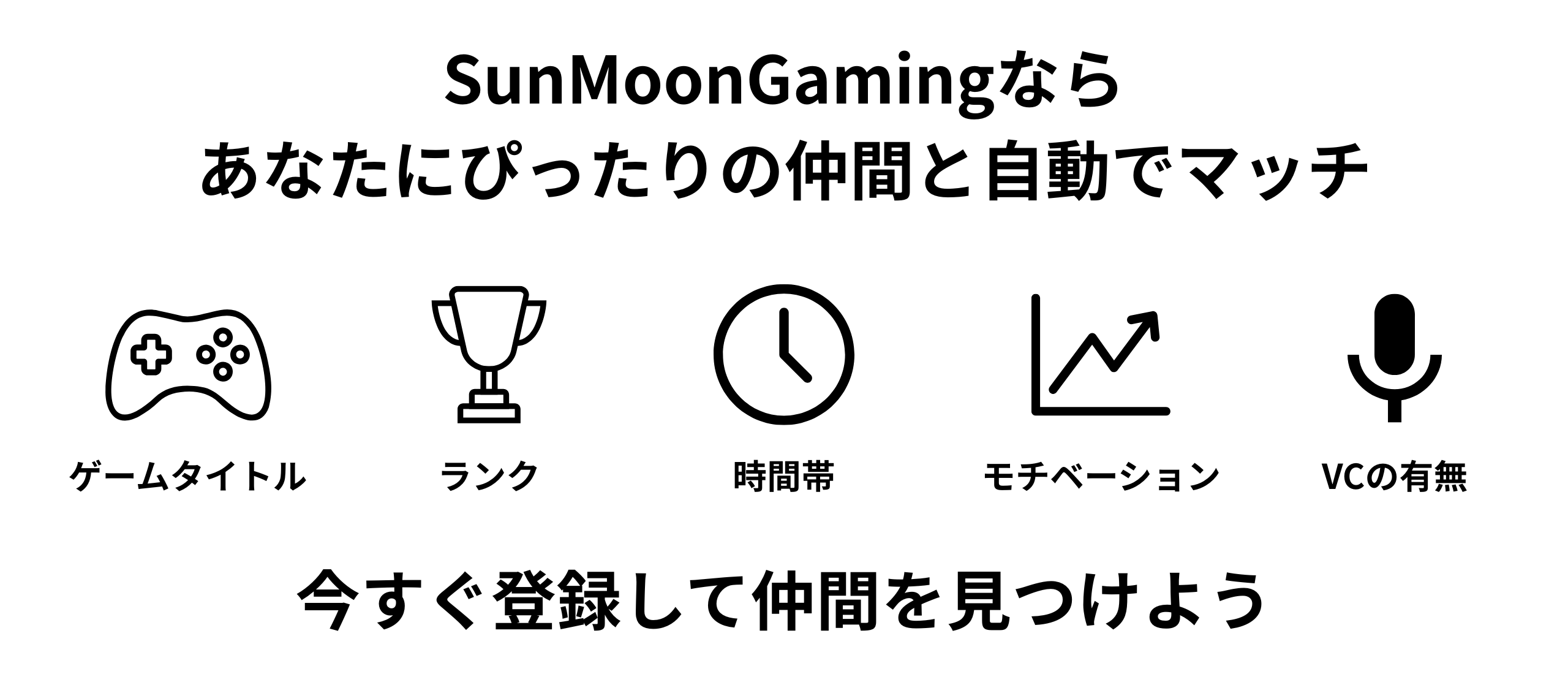 無料会員登録はこちら 無料会員登録はこちら 無料で使える SunMoonGamingは完全無料で利用できます。 月額費用や登録料は一切不要。気軽に仲間探しを始めましょう。 プロフィールを充実させよう プレイ時間帯・ボイスチャットの可否・プレイスタイルなど、 自分のゲーミングスタイルを登録することで、相性の良い仲間が見つかりやすくなります。 プレイしているゲームを登録 APEX・VALORANT・OW2・SF6など、 ゲームごとにランクやモチベーションを登録することで、 理想のプレイヤーとのマッチングが可能になります。